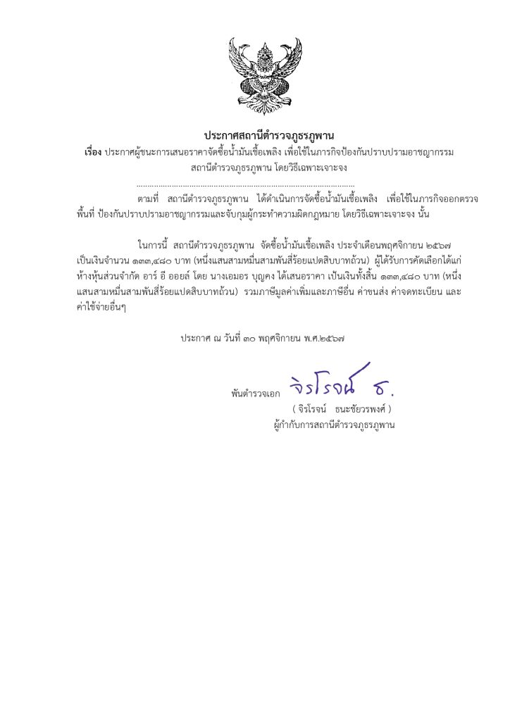 จัดซื้อจัดจ้าง สภ.ภูพาน ประจำเดือน พฤศจิกายน 2567