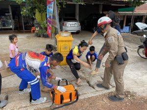 ได้รับแจ้งจากศูนย์วิทยุภูพานว่า มีเหตุ ว .40 จักรยานยนต์ ลมเอง จราจร สภ.ภูพาน ออกตรวจสอบ พบว่า มีผู้ได้รับบาดเจ็บ 3 ราย กู้ภัยเสือดำนำส่งโรงพยาบาลพระอาจารย์แบน อุบัติเหตุดังกล่าว เกิดจาก รถยนต์ทำน้ำมันเครื่อง รั่ว ตกหล่นบนพื้นถนน จักรยานยนต์คันดังกล่าว จึง ลื่นล้มน้ำมันเครื่อง ซึ่งรถยนต์ ทำ ตกหล่นไว้ และได้ ให้นำทรายมาโรย ที่น้ำมันเครื่อง ตกหล่น เพื่อป้องกัน เกิดอุบัติเหตุ ต่อไป