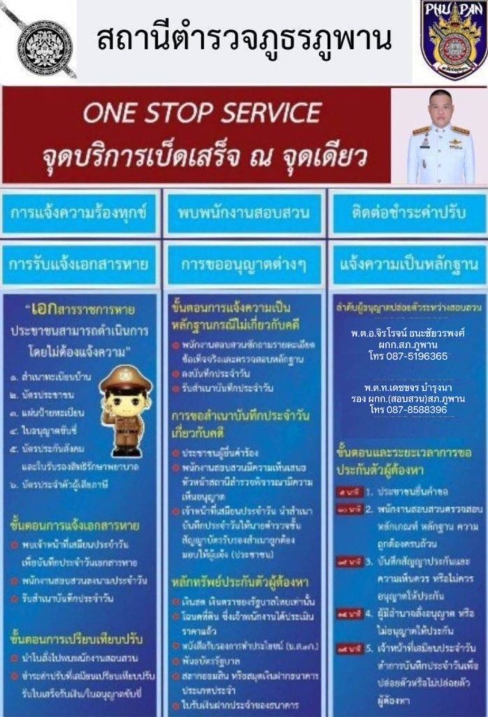 1) ภาพการพัฒนายากระดับการให้บริการ One Stop Servive เพื่ออำนวยความสะดวกให้กับผู้มารับบริการ ภาพจุดประชาสัมพันธ์/สอบถามความคืบหน้าการดำเนินคดี